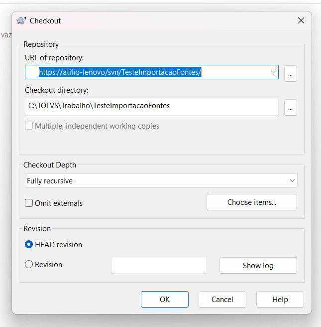 - Pelo Windows agora, copie as pastas de fontes que você tem em outro diretório, e cole nessa pasta onde você fez o CheckOut